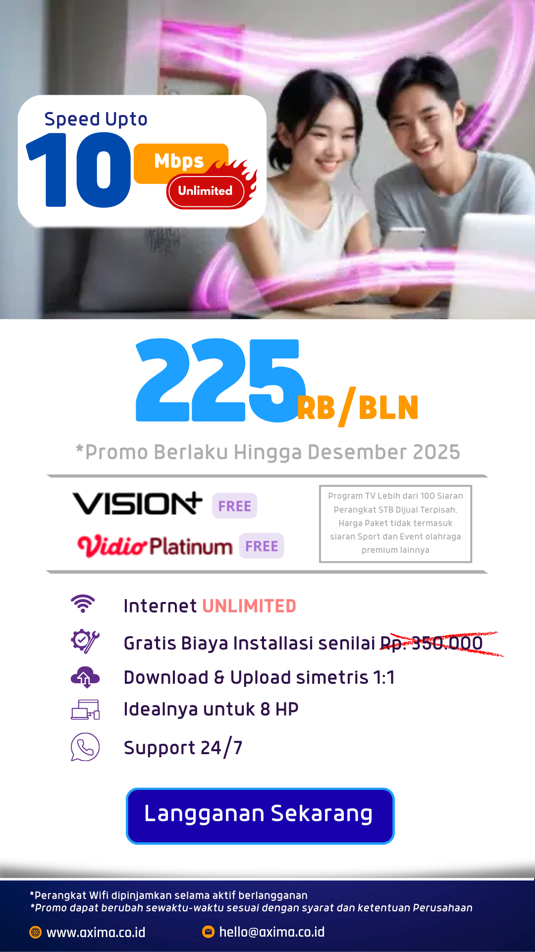 Biaya Pemasangan : Rp0,- Harga Paket bulanan : Rp. 225.000,- Harga STB : Rp0,- TOTAL : Rp. 225.000,-